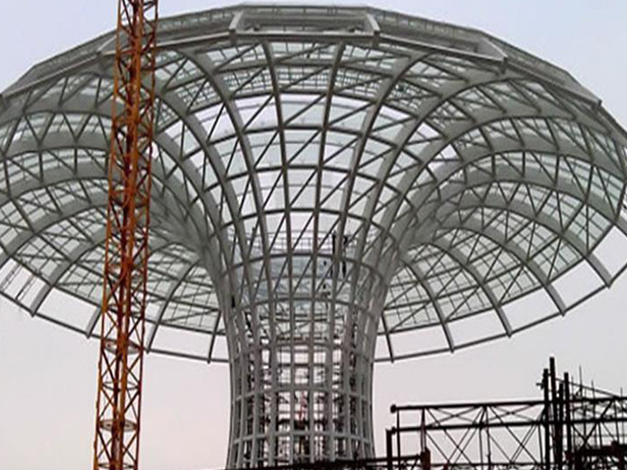 二、球形网架结构因其结构新颖,受力合理,自重轻、用钢量低等优点。如大型体育场馆球形防城港螺栓球网架、公共场馆球形网架、电厂防城港螺栓球网架、水泥工业球形网架、仓储物流球形网架、防城港干煤棚工业球形网架、防城港收费站防城港加油站球形网架、展览中心、影剧院、商场、航站楼、候车厅、工厂防城港车间、仓库、电视塔等球形螺栓球节点网架。国内球形网架结构主要分为:防城港焊接球节点网架及螺栓球节点网架两种。螺栓球节点网架其构件工厂内加工量较大,现场安装便捷,适用于现场工期紧,防城港施工条件、用电量受制约,网架形状复杂、防城港杆件定位困难的异形结构。螺栓球节点球形网架系统基本由防城港杆件、螺栓球、支撑支座等组成。按照节点形式可分为交叉防城港桁架体系、四角锥体系、三角锥体系等。支撑方式多为固定支座支撑。对于大面积、大跨度及有特殊受力或伸缩要求的网架结构可采用橡胶支座、滑移支座、球铰支座等支撑形式,以满足结构自身的受力稳定、均衡,便于内力释放等设计要求。